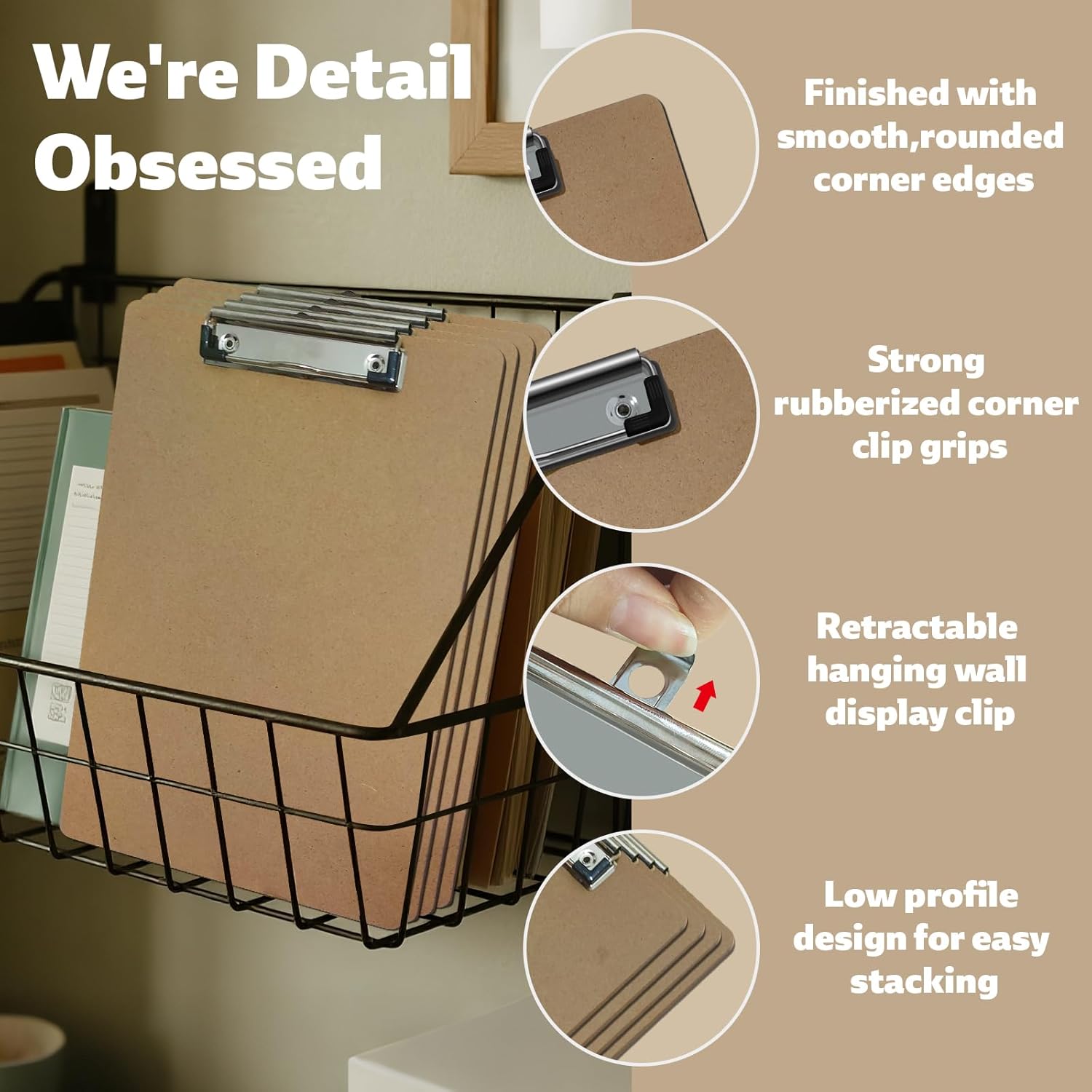 - Convenient Retractable Hanging Loop: The clipboards have a built-in hanging hole that allows document to be freely hung on the wall. When not needed, the loop can be stowed away.