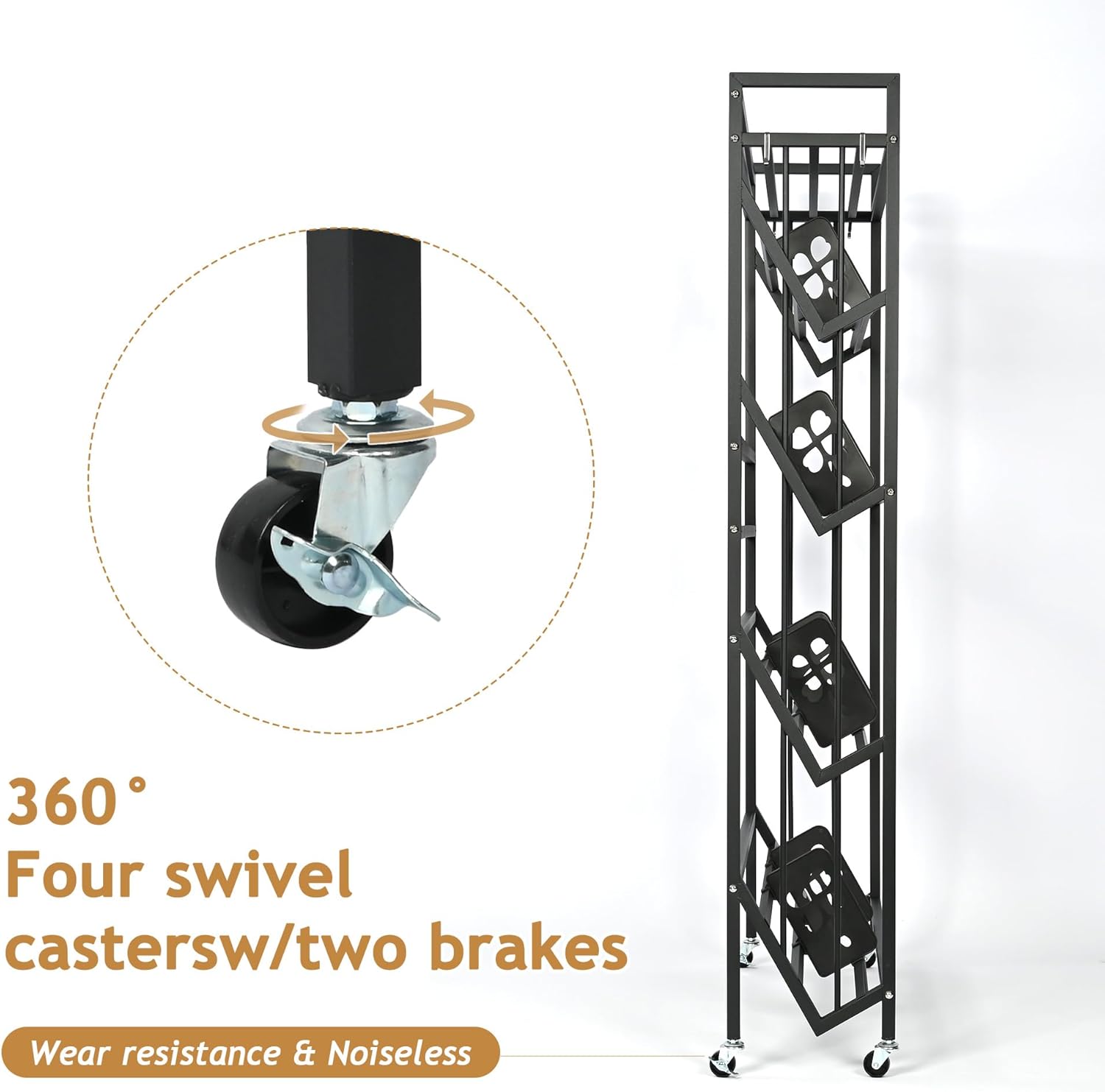 - 360Β° Rotation Mobile Wheels: This metal rolling book cart comes with 360Β°rotation wheels. Library book cart equipped with casters, 4 wheels all are locable, which will allow you to move your bookshelf easily, keep books handy
