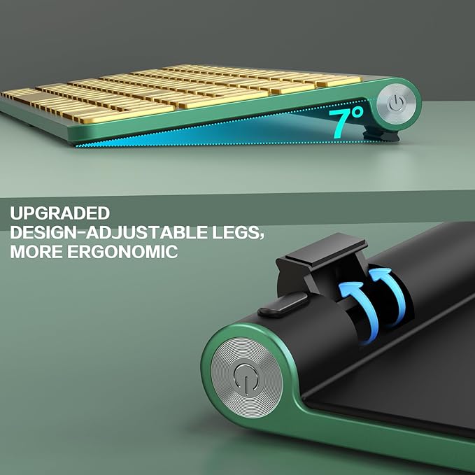 - Ergonomic Design & Efficient Functionality:This green compact wireless keyboard features an adjustable tilt angle, providing a comfortable typing experience to reduce wrist fatigue. Non-slip rubber feet ensure it stays stable on any surface. Additionally, it is equipped with 12 multi-function keys and multimedia shortcuts for quiet, efficient task handling(NO mouse include)