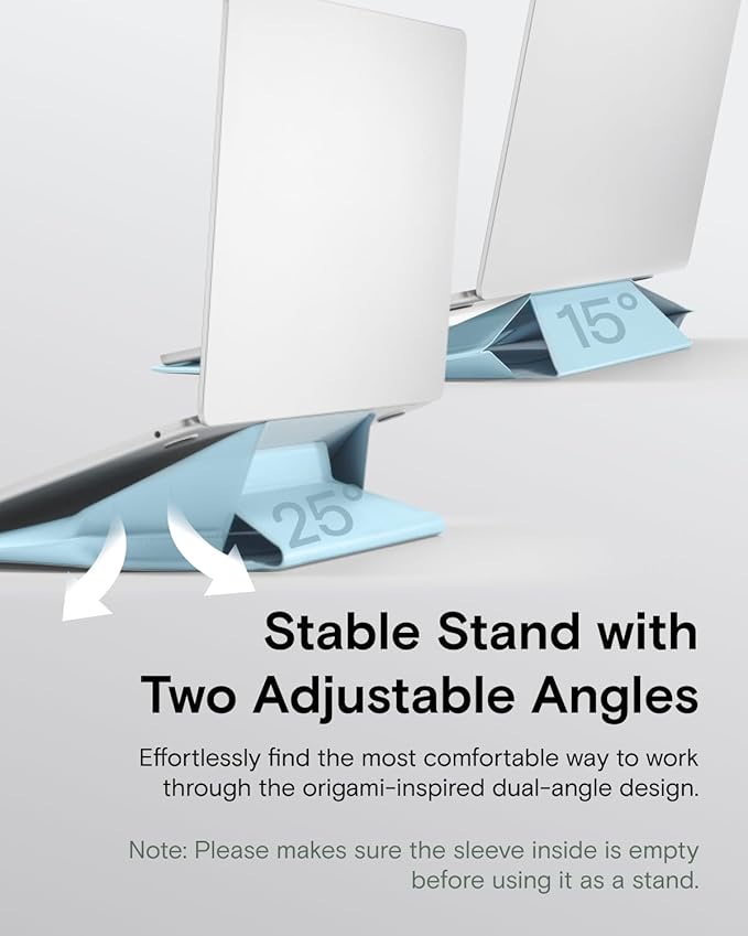- Two Angles Laptop Sleeve Stand: Instantly convert this sleek Laptop Sleeve into a sturdy Laptop Stand. Features dual-angle adjustment (15° for typing; 25° for viewing) to elevate your screen, reducing neck/wrist strain from poor posture. More than a protective Laptop Bag, this ergonomic Computer Bag works anywhere – transforming your carry sleeve into a pain-relieving workstation.