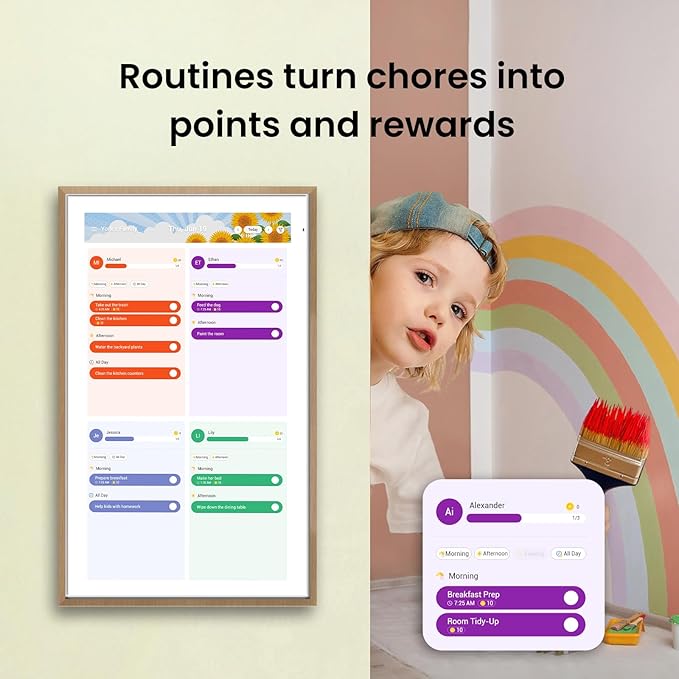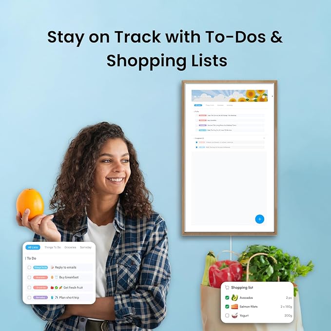 - Smart Photo Frame & Live Screensaver — The 21.5" HD touchscreen eCalendar displays memories from Google Photos and more, seamlessly, no subscription required. Personalize with videos, schedules, clocks, or a mix. Auto Brightness adapts, Sleep Mode saves energy. Climate Pledge Friendly. Beautiful faux wood frame for wall use.