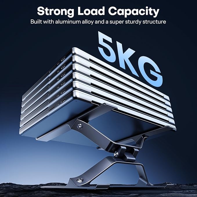 - 【Strong Load Capacity】The laptop stand is made of high-strength aluminum alloy, sturdy and durable, with a load-bearing capacity of up to 5 kilograms, so you don't need to worry about your laptop tilting or shaking during use