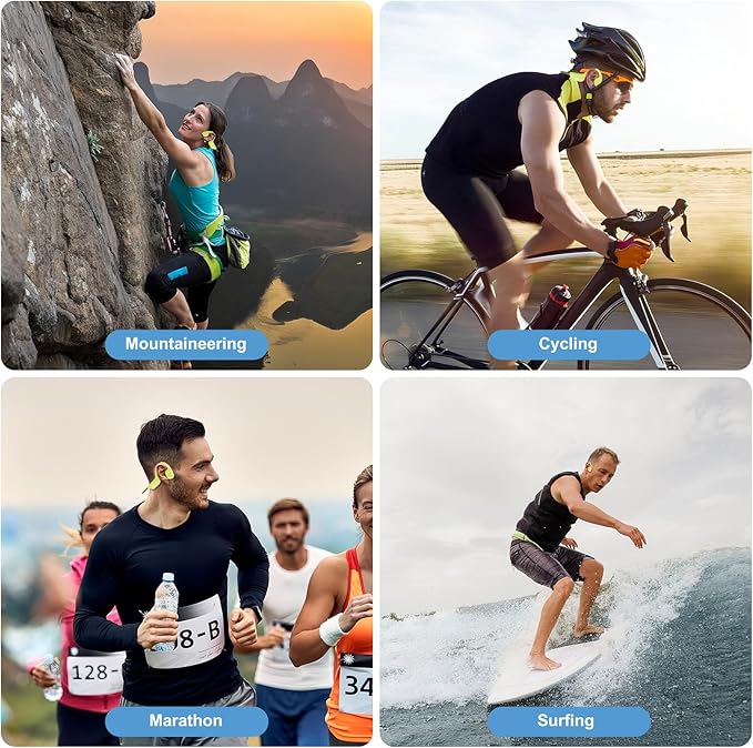 - ⚠️Swimming requires MP3 mode⚠️IPX8 Water Resistance & Stable Fit: These swimming bone conduction headphones feature an ergonomic ear-hook design that evenly distributes pressure. This ensures they remain comfortable even during extended wear and stay securely in place without slipping or shifting, making them ideal for various sports. With an IPX8 waterproof rating, they are suitable for use even during activities like swimming or surfing