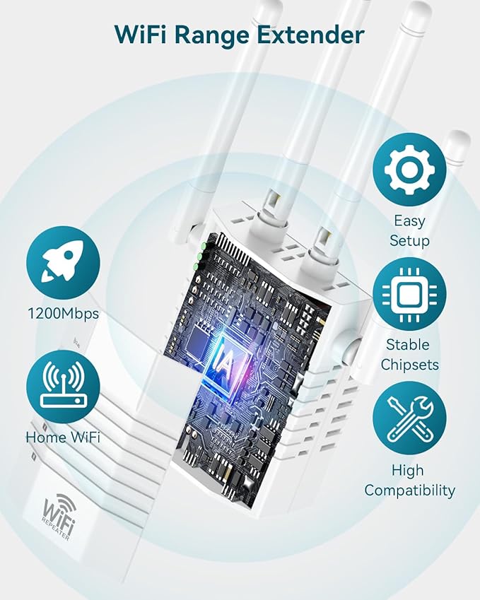 Dual - Band 2.4G&5G WiFi Extender Signal Booster, WiFi Extender with 4 High - Gain Antennas, WiFi Booster with 2 LAN Ports, WiFi Repeater with 12880 Sq.ft Coverage 105 Devices