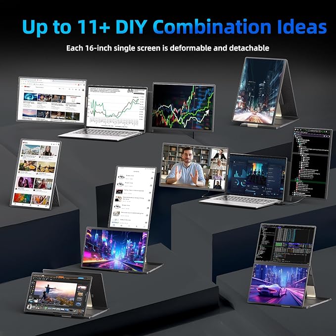 - Boost Efficiency Laptop Extender: BKVOO laptop extended monitor portable supports mirror and extended display modes, along with multiple combination display setups allows you to better process and organize more tasks to increase productivity up to 300%. Meets all your needs for IT programmers, stock traders, business for remote work and work from home and office setups