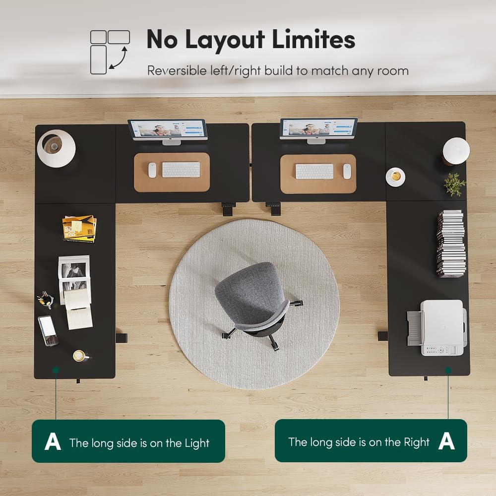 - No Layout Limits: Effortlessly adapt to any room layout with your unique reversible installation feature. Choose between left/right long-side configurations to maximize space utilization, ensuring seamless integration into any home office setup. Tailored to your unique needs, fezibo L-shaped desk offers ultimate flexibility while delivering a premium workspace solution.