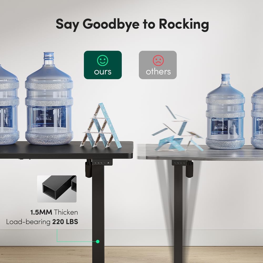 - Powerful Lift System: The stand up desk with sturdy steel. Contained an industrial-grade steel frame that able to support up to 176 lbs. Maximum lifting speed: 20mm/s, no-load noiseβ€55db.