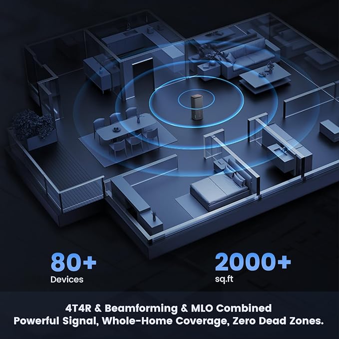 - 【Long Range WiFi Router】With latest Qualcomm dual-core 1GHz CPU which is equipped with six of the industry's top-tier Skyworks high-performance signal amplifiers. These amplifiers feature highly efficient RF (Radio Frequency) transmission power and receiving sensitivity, and seamlessly work with 11AX (Wi-Fi 6) technology. This combination results in stronger router signals and more stable long-range communication.