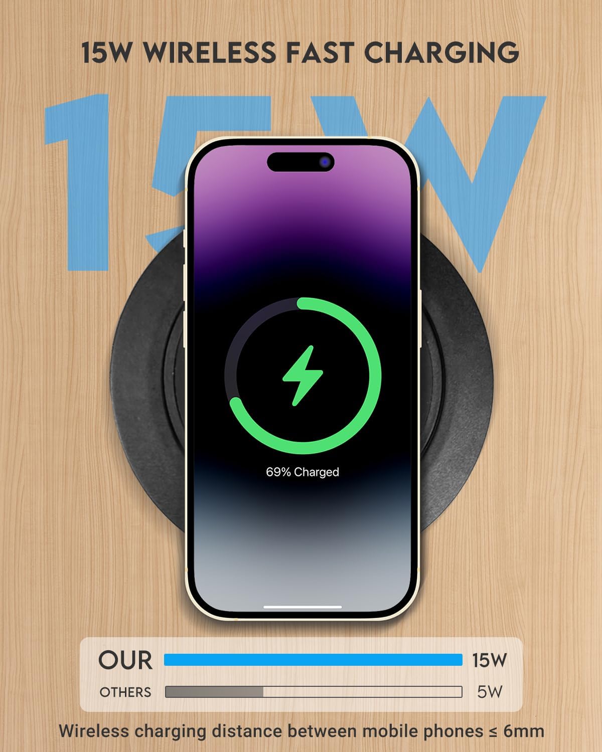 - Fast Charging Station: The embedded desktop charger features 15W fast charging, which can quickly replenishes the battery of compatible smartphones. It supports Qi charging standard and is suitable for most mobile phones in the market that can enjoy charging