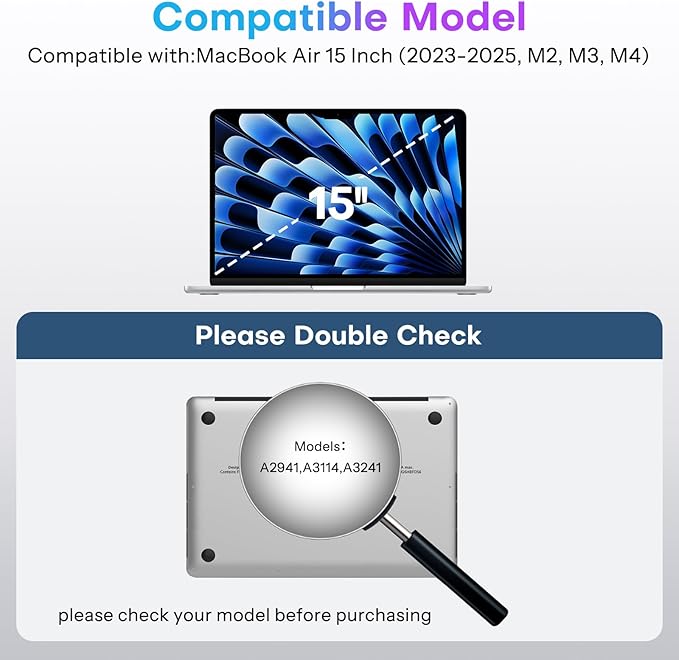 - Compatible Devices:OMOTON magnetic MacBook privacy screen is specially designed to fit the MacBook Air 15 Inch (2023-2025, M2, M3, M4). Not compatible with other MacBook models.(Model: A2941,A3114,A3241)