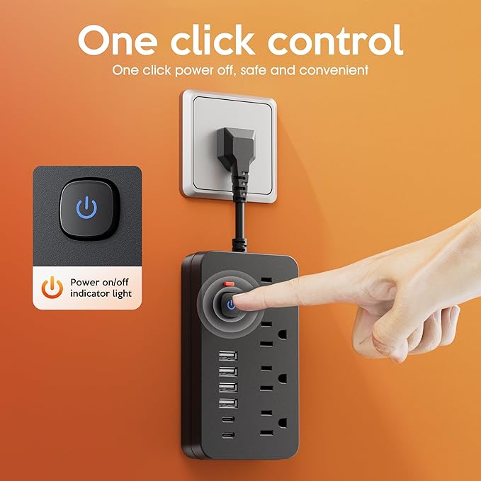 - 10-in-1 Multi-Device Power Strip: This multi outlet wall plug provides 4 AC outlets, 4 USB-A ports, and 2 USB-C ports for charging up to 10 devices simultaneously. Designed as a power strip with USB ports for home offices, dormitories, or travel, reducing reliance on multiple adapters.