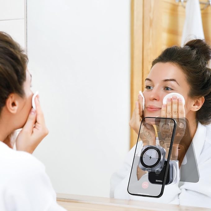 Vacuum Magnetic Suction Phone Holder, 15W Wireless Charger Foldable Suction Cup Stand for iPhone 17 16 15 14 13 12 Series, Portable Phone Mount Use in Car/Mirror/Glass/Screen/Smooth Surface