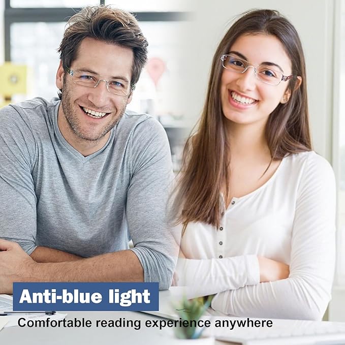 - ✔【High Quality 5 Pack Readers】- 5 piece portable rimless reading glasses, filter harmful blue light from screens and UV400 protection, helping to reduce eye strain and protect your eyesight. Frameless readers comes with 2 string help you hang the glasses on neck to prevent loss