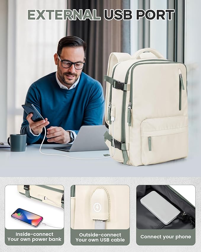 - 💎 USB Quick-Charging - Built-in cable connects to your power bank (not included) for charging without opening the bag. The scratch-resistant, weather-sealed port cover ensures durability and full protection.