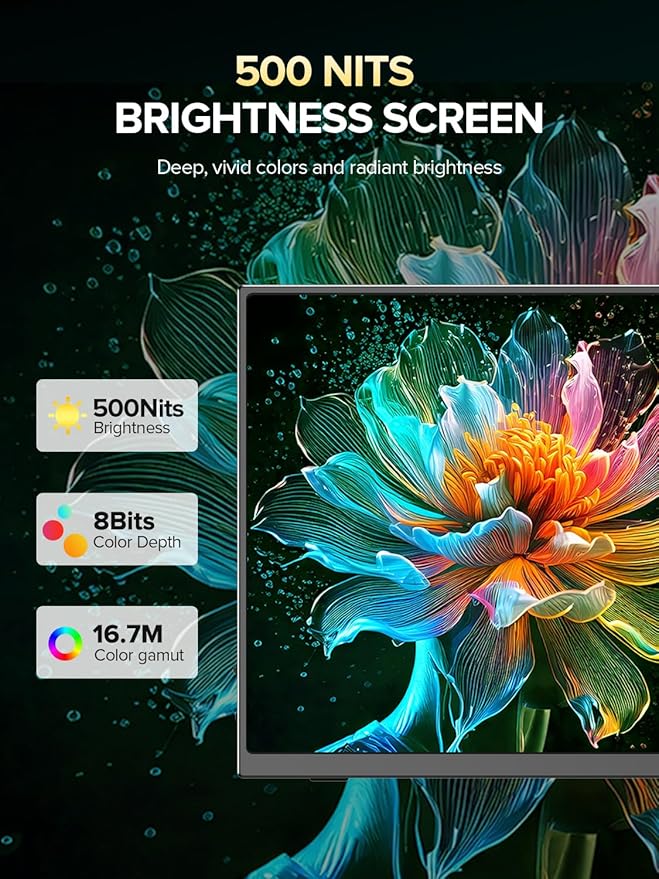 - 【IPS Matte Display with 500 nits & 100% sRGB】Enjoy vivid, accurate colors on a matte IPS screen with 500 nits brightness and 100% sRGB color gamut. This UPERFECT portable monitor delivers professional-level visuals, reduces glare, and provides smooth viewing for designers, content creators, office work, and entertainment.