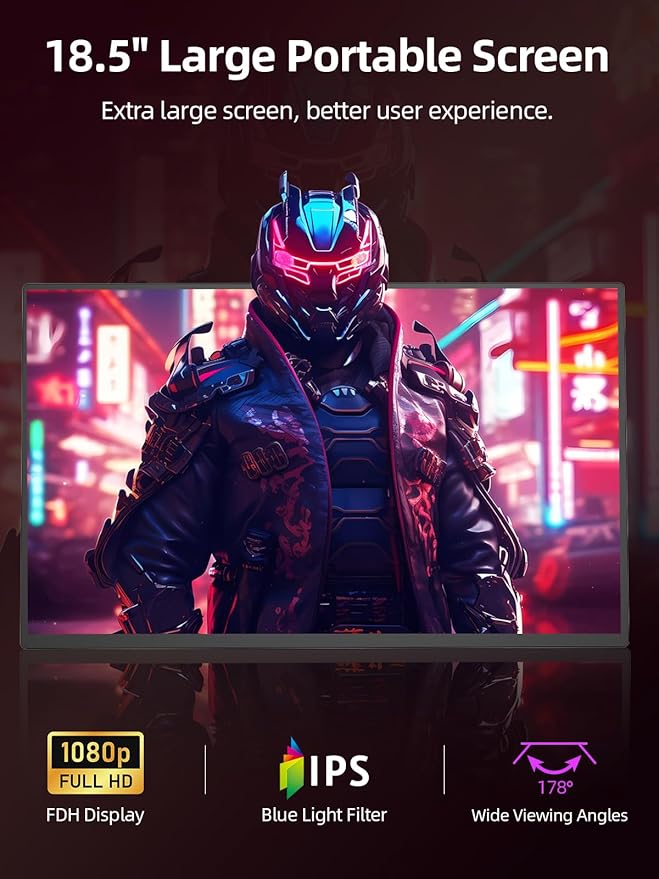 - Lightweight and compact, this 18.5'' monitor is designed for travel. Easily pack it in your bag as a laptop screen extender or mini monitor while on business trips or vacations, making it your go-to portable laptop monitor for all your needs.
