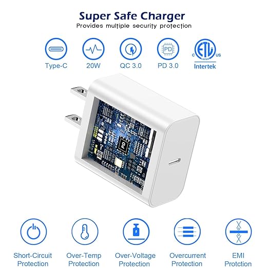 - Itelligent Chip: iPhone 16 charger fast charging adapter equipped with multiple built-in protection systems to safeguard your device from overvoltage, overcharging, overheating and overcurrent. The built-in intelligent chip automatically adjusts the charging current according to the phone's battery level, ensuring safer and more reliable charging