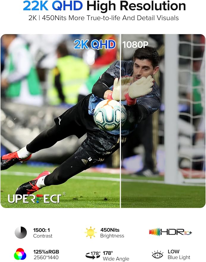 UPERFECT 24.5" 2K Portable Monitor Touchscreen, 165Hz Gaming Monitor FreeSync 0.1ms Fast IPS Large Screen, Built-in 180° Adjustable Stand/VESA, USB-C HDMI Second Screen for Laptop, Phone, Game Console