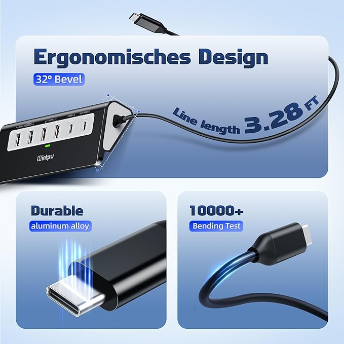 - Aluminum Ergonomic Design: Different from other usb c hub's plastic materials, this usb c multiport adapter with aluminum unibody provides premium protection with a slick look and a better heat dissipation. Temperature control under 45β, keep all the USB ports safe and stable during operation. Ergonomics 32-degree angle and rubber mats, saving more effort when you plug and unplug your USB devices and placing more stability on your desk.