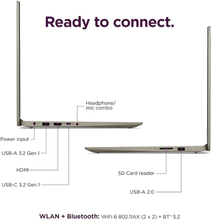 - 【Tech Specs】Stay connected with Wi-Fi and Bluetooth and variety of ports. The Lenovo IdeaPad laptop features 1 x USB-C, 2 x USB-A, 1 x HDMI, 1 x Headphone/Microphone Combo Jack, 1 x SD Card Reader, allowing you to connect a variety of peripherals and devices for enhanced productivity.