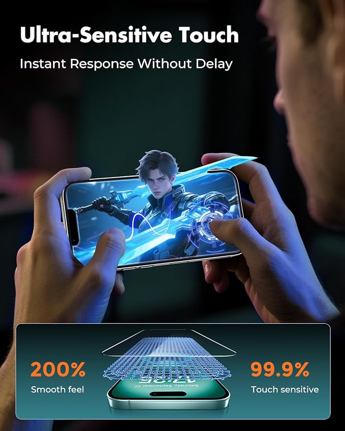 - Clarity & Sensitivity: Our ultra-thin screen protector is 0.01 inches thick, nearly invisible, and offers 99.9% clarity. Enjoy a vibrant display with silky smooth touch sensitivity for quick, natural responses.