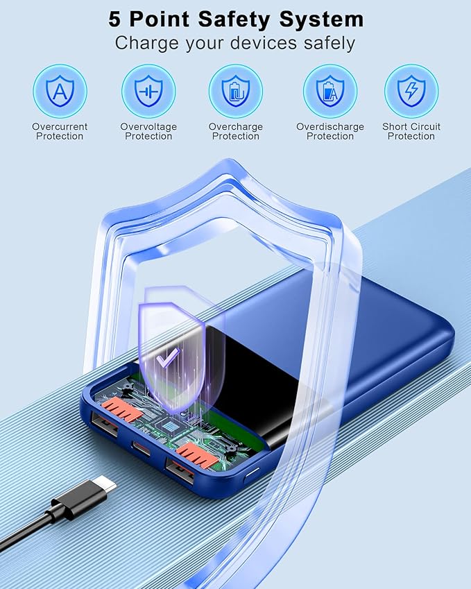 - High-Quality Material and Superior Compatibility: This power bank is made from premium, durable materials that ensure safety and longevity. It is designed to be safe, with built-in protections against overheating, overcharging, and short-circuiting, giving you peace of mind while charging your devices. Supports PD3.0/QC4.0 /QC3.0/AFC/FCP protocols that are tailored to various electronic devices. Just to let customers get a safe product.