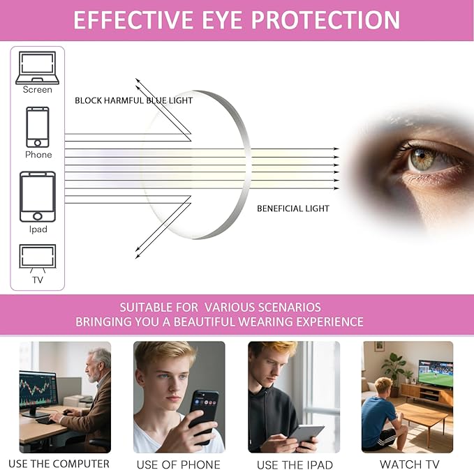 - REDUCE HARMFUL BLUE LIGHT - If you use your mobile phone/computer/TV/Read for a long time, you will feel Poor sleep/Dry eyes/Eye congestion/Blurred vision/Photophobia, Blue light is hurting you, you need a pair of Henotin anti-blue light glasses to protect your eyes from these troubles.