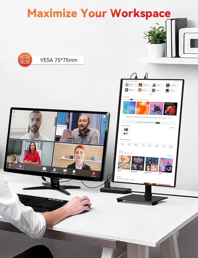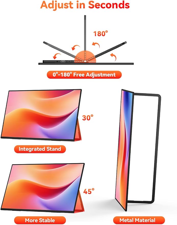 - 【Boost Your Productivity & Entertainment】Use it as a standalone display, extend your laptop desktop for multitasking, or mirror your screen for presentations. Copy your phone for movies or duplicate your Switch/Game Console screen for a larger gaming view. Easily switch between landscape and portrait modes – perfect for coding, documents, photo editing, or data analysis.