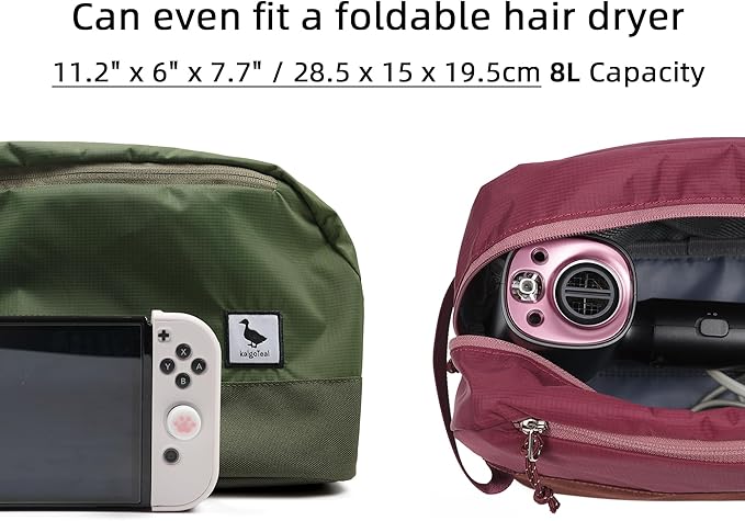 - 8L Max Capacity: Measuring 11.2" x 6" x 7.7" / 28.5 x 15 x 19.5 cm, large enough for travel toiletries, cosmetics, and even a foldable hair dryer. The bottom features 1cm thick cushioned padding for excellent item protection.
