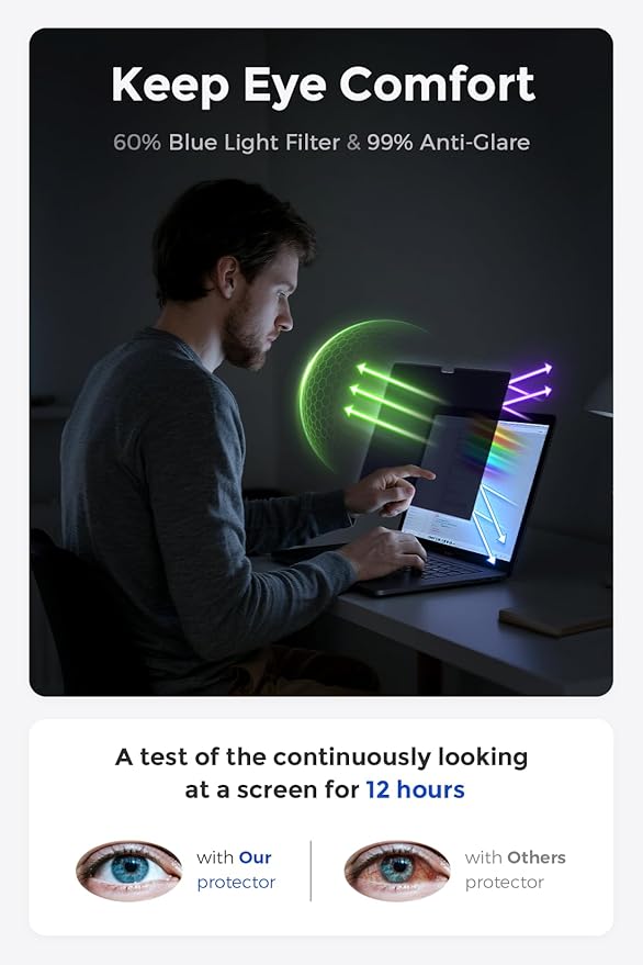 - Exclusive 26° Privacy Angle vs. Industry Standard 30° – Engineered with tighter viewing angles to block side glances more effectively than typical 30° protectors. Your macbook pro 14 inch screen protector stays invisible to neighbors in coffee shops or open offices.