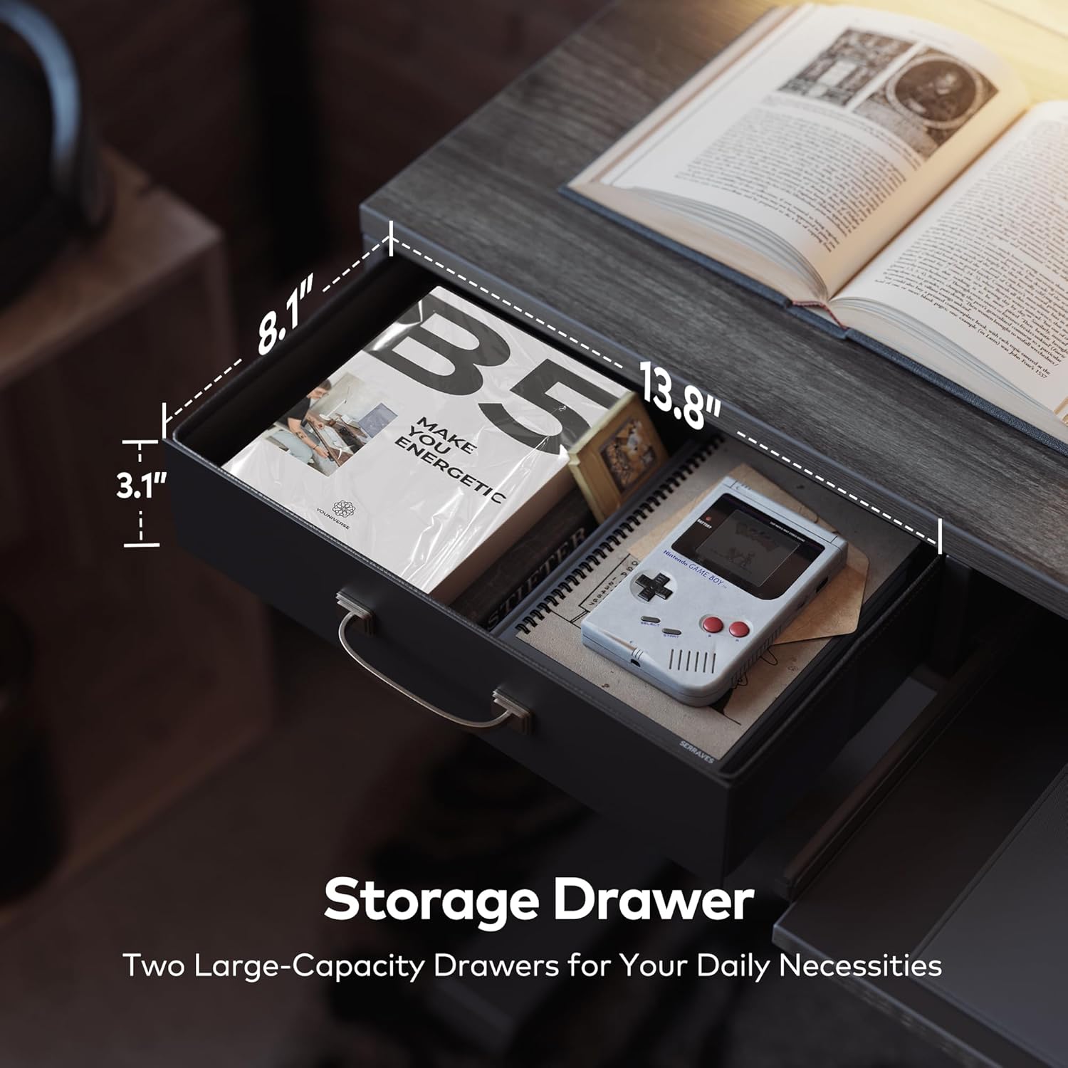 - Spacious Work Space: The top shelves with double drawers (With 13.7 inch width and 8.1 inch height) design expertly make your desktop tidier and helps you head up when you put your screen on it. The stand up desk also configured with a slide-out keyboard tray (23.4'' X 10.2'').