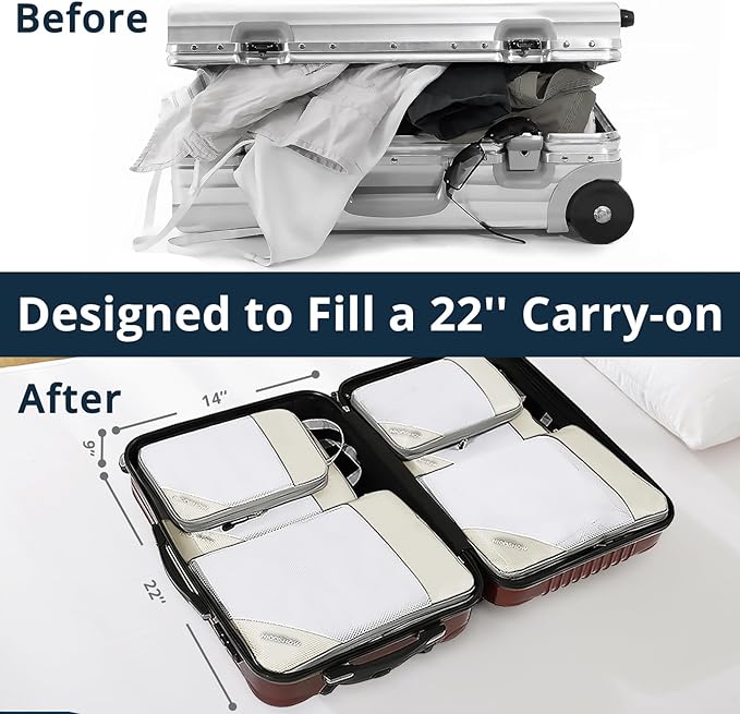 - Compression Packing Cubes for Travel, Lightweight Travel Essentials, Packing Cubes Compression for Space-saving, 9 pcs, Beige
