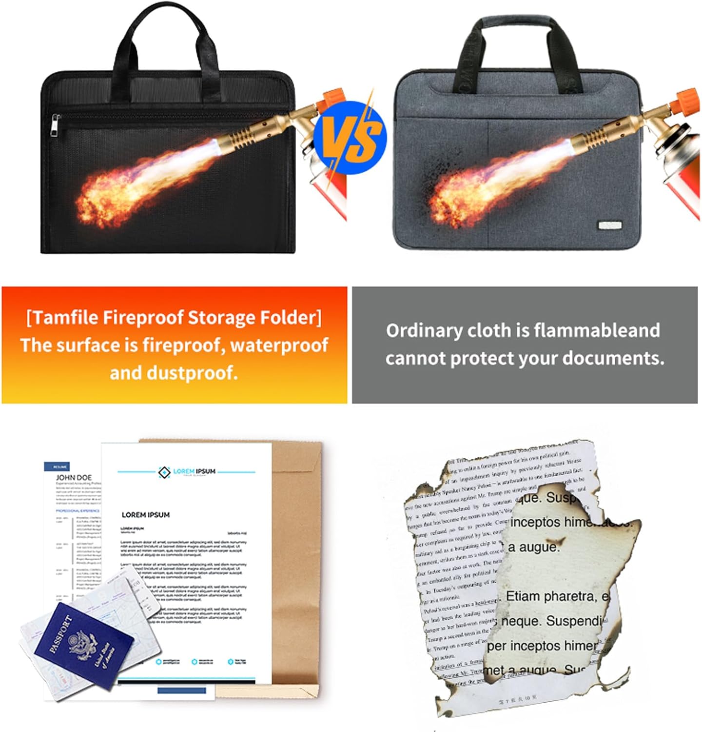 - Secure & Fireproof File Folders – Keep your vital documents safe with our fireproof document bag, designed to withstand extreme temperatures up to 2200°F (1200°C). Perfect for protecting passports, deeds, and certificates—certified by SGS (UL94 VTM-0).