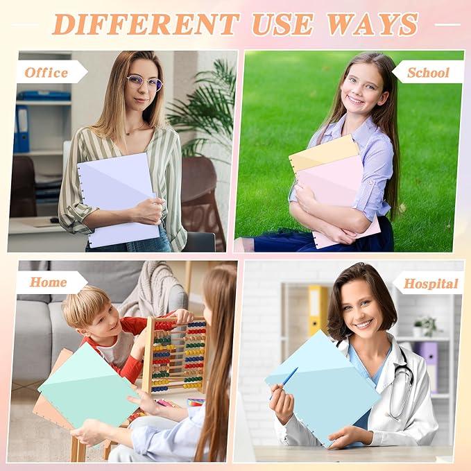 - Durable & functional divider set: Our 9x11 inch divider set includes 8 high-quality plastic dividers, great for organizing documents in your binder. Designed to fit 8.5x11 inch paper, these dividers offer both durability and convenience with their built-in pockets. Keep your papers, notes, or recipes organized without the need to punch holes.