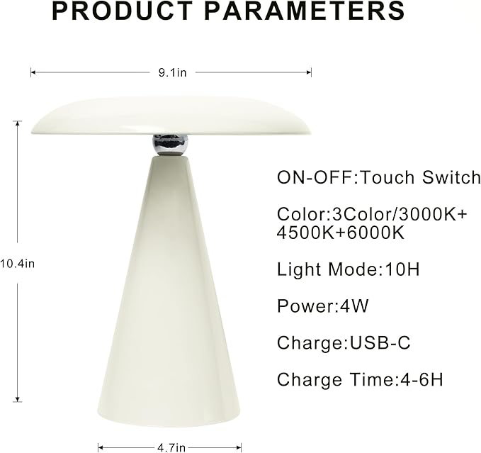 - 3 Color Temperatures & Stepless Dimmable Brightness Choose between warm light (3000K), neutral light (4500K), or cool white (6000K) to set the atmosphere. With stepless touch dimming from 10% to 100%, this dimmable LED lamp is ideal for reading, relaxing, or tasks.