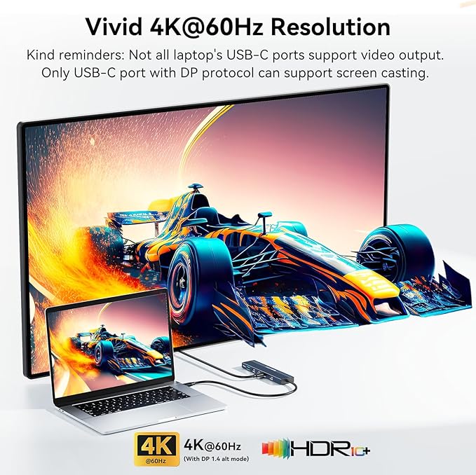 - 【A versatile C port for video and data transfer.】This usb c dongle is designed with a 10Gbps full-featured USB C port, which not only transfers data at 10GBps, but also supports DP alt mode, which compatible with portable monitors, USB-C monitors, AR smart glasses and more, catering to projection needs and adaptable workspaces.