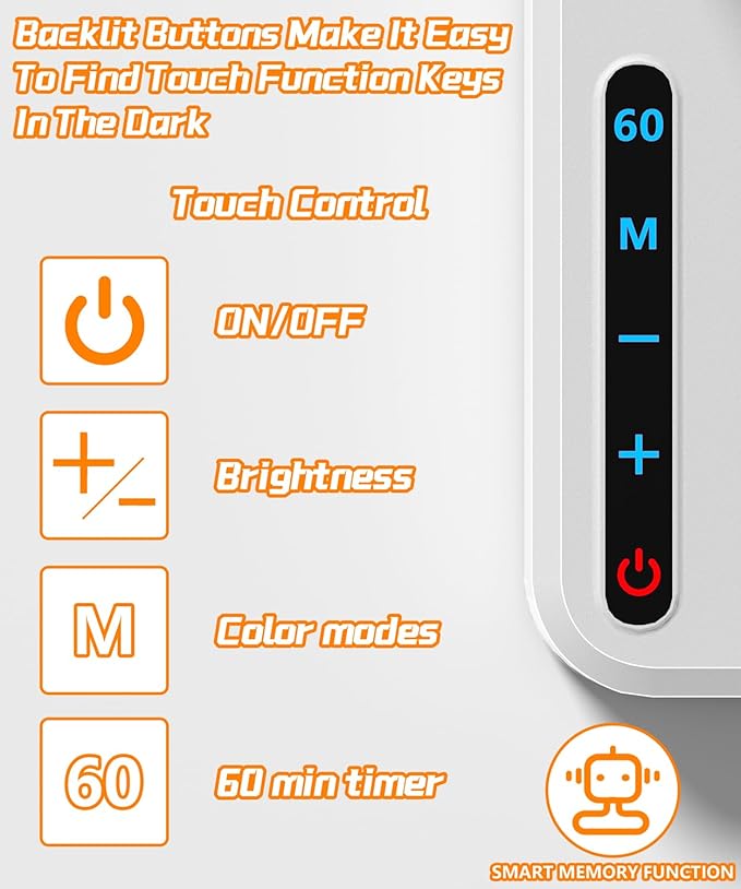 - [ 9 Lighting Modes & 3 Color Temperatures ] Touch control desk lamp with 9 modes (warm/natural/daylight) and dimmable brightness. Customize from intense focus light to relaxing amber glow—ideal for late-night college study sessions or office presentations