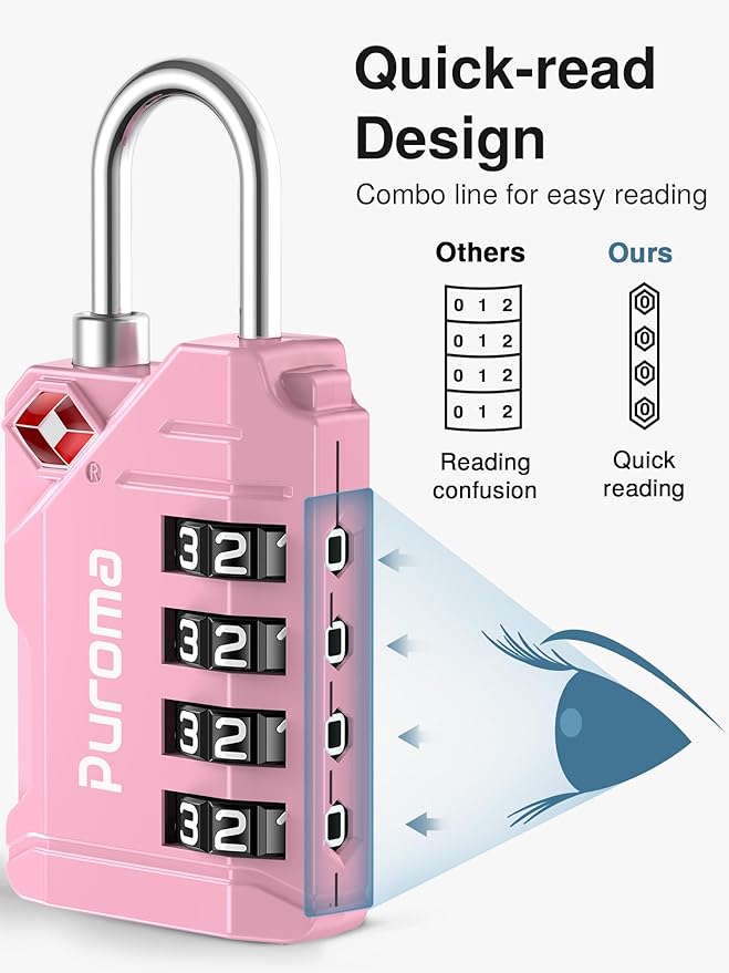 - Convenient Design: Puroma TSA locks for luggage come with an easy-to-read side window design that makes it easy to set the combination. Its simplicity and efficiency save you time when using it for suitcases, backpacks, gym lockers, and other lockable items.