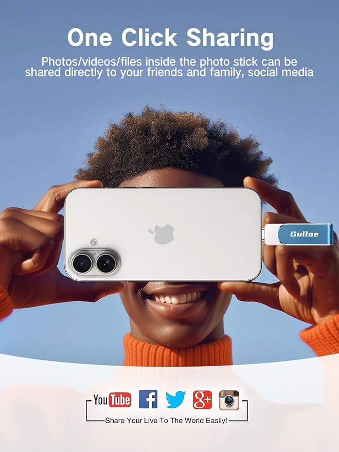 - 【Watch Movies, Photos and Play Music Directly From Phone Flash Drive】Store your favorite videos, audios and music on your iPhone's Photo Stick, then seamlessly plug and play on your iPhone or iPad anytime, anywhere. No more need for Internet or WiFi. This iPhone storage device plays videos in many different formats. Pictures stored on the Phone storage device also support different formats. Great way to store all your pictures and videos on an phone external storage device.
