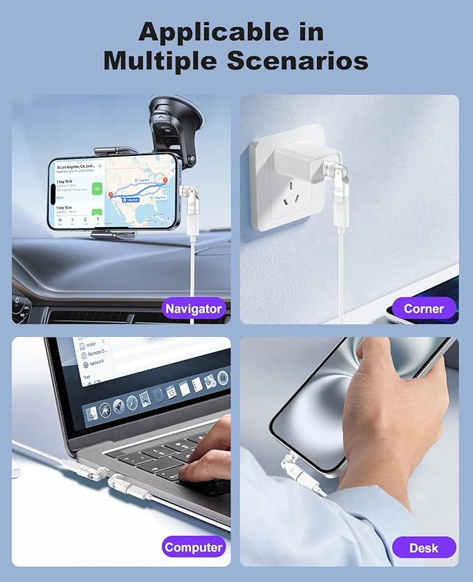 - 180 & 360 Degree Rotation: Compared with traditional adapters and charging data cables that cannot adjust the angle, this usbc right angle adapter provides 360 degree rotation and 180 degree horizontal bending, which makes it easier for you to adjust the angle for typing, gaming or watching movies while charging for a comfortable and efficient experience.