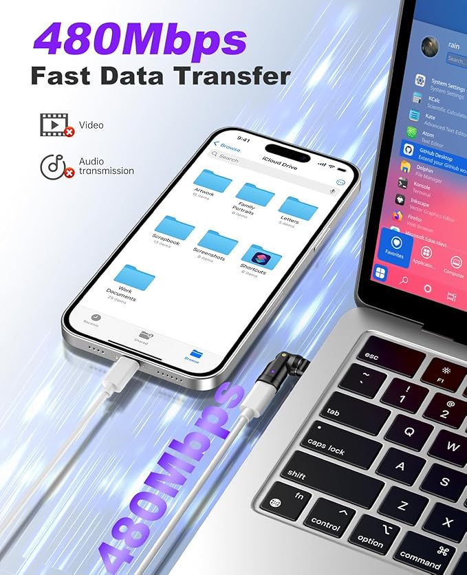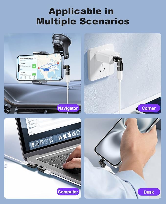 - 180 & 360 Degree Rotation: Compared with traditional adapters and charging data cables that cannot adjust the angle, this usbc right angle adapter provides 360 degree rotation and 180 degree horizontal bending, which makes it easier for you to adjust the angle for typing, gaming or watching movies while charging for a comfortable and efficient experience.