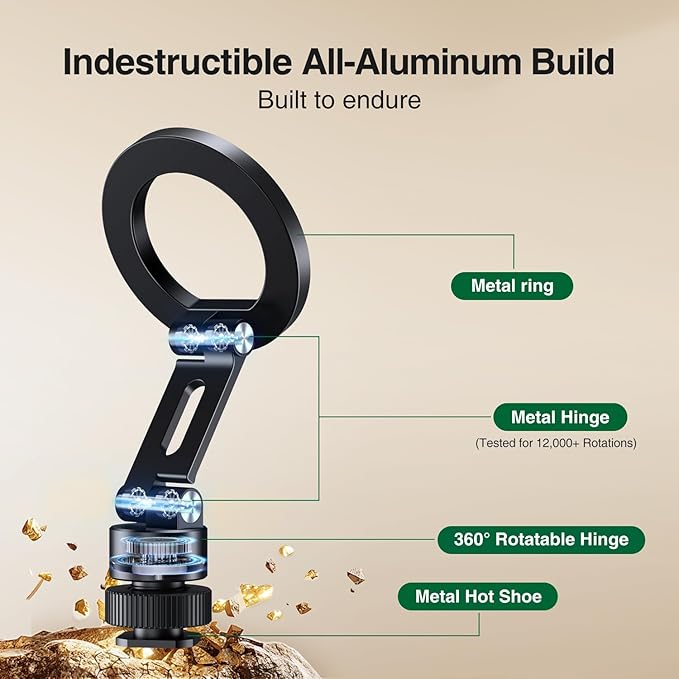 - 【Firmly Hold your Phone】 Our patented magnetic array is engineered for one thing: total security. It delivers a significantly stronger, more reliable hold than standard magnetic iPhone tripod mounts, giving you the confidence to shoot in any scenario. Whether you're capturing fast-action sequences, vlogging on the move, or shooting in windy conditions, our grip remains unshakable.