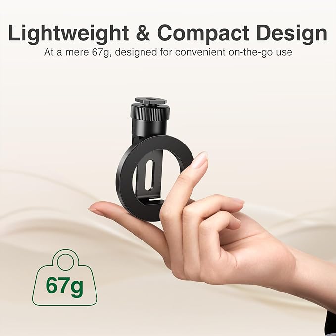 - 【Smooth, Full-Range Adjustment】Once mounted on your camera, the 360° rotatable base lets you smoothly swing your phone screen toward yourself from any angle. With a dual-axis tilt range from -90° to +90° and magnetic control, this tripod phone mount enables fast and precise positioning. Easily switch between overhead setups, low-angle vlogging, and portrait or landscape orientation—all while keeping your device securely locked in place.