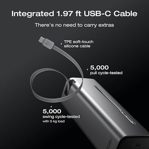 - Ultra-Fast Multi-Charging: 300W total output (4 ports), 1 × 140W USB-C port, 2 × 65W USB-C ports. With a built-in, retractable 140W USB-C cable, charge up to 4 devices at once.