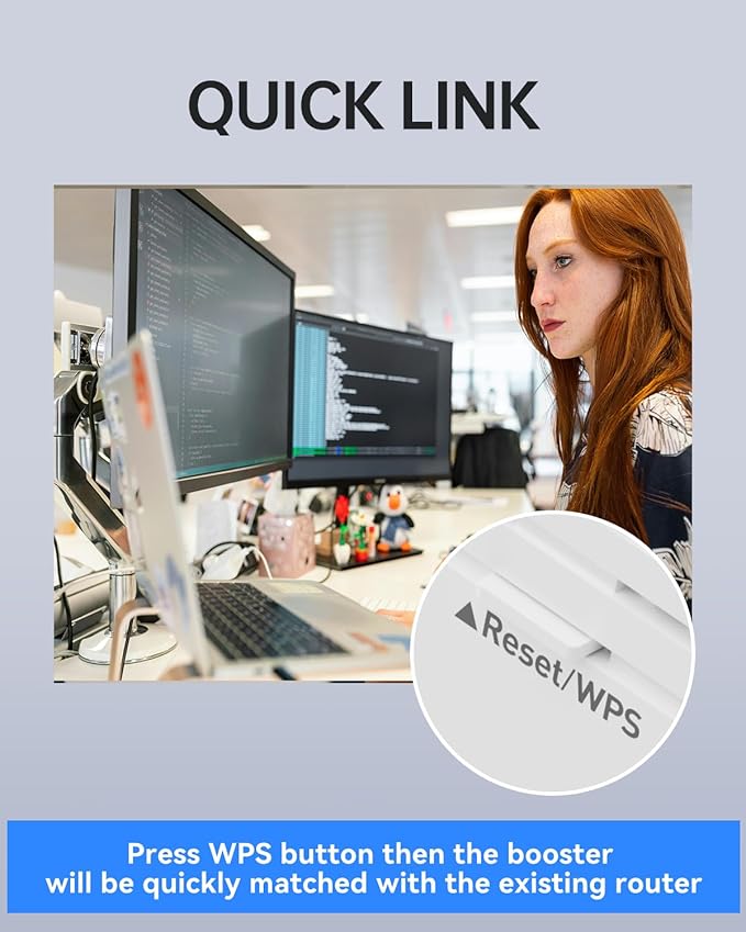 - Instant One-Touch WPS Setup: Connect your booster to your router in seconds—just press the WPS button on both devices. Experience strong, seamless WiFi right away. Maximize flexibility with multiple modes: use AP mode to convert wired connections to wireless, or leverage the Ethernet port for stable, high-speed wired access. Enjoy faster and more adaptable internet throughout your home.