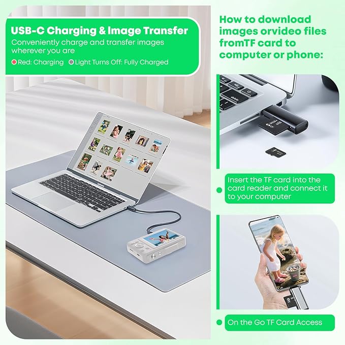 - 【Variety-Full of accessories】The package includes 64GB TF card, portable lanyard, data transmission line, detailed user manual and exquisite gift box packaging, only you can think of nothing we can't do. All your needs in one click. Whether as a birthday surprise, Christmas gift, or other important occasion souvenir, it is the first choice to give gifts.