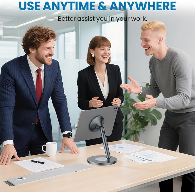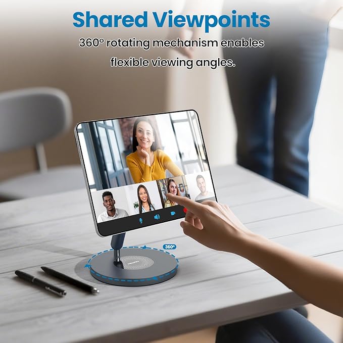 Nillkin Magnetic iPad Stand for Desk, MagSafe Wireless iPhone Charger Stand, 360° Rotating Base, Adjustable Aluminum Tablet Holder for Work, Office, Home, Kitchen Use