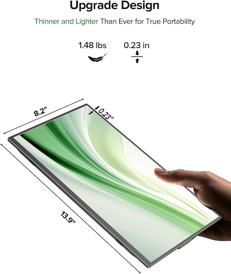 - 【Slim & Lightweight, Easy to Take Anywhere】: Newsoul 15.6" portable monitor boasts ultra-thin design (as thin as 0.23") and weighs only about 1.4 lbs. Whether you slip it into your daily commute backpack or tuck it into a suitcase for a business trip, it takes up barely any space. Truly travel monitor, you can grab it and go whenever, wherever.