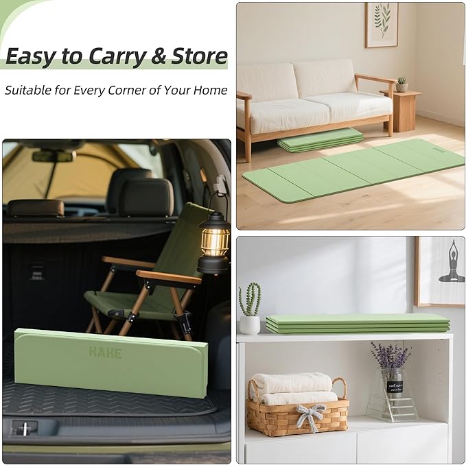 - 【Yoga Mat for Travel】The foldable yoga mats features an innovative seven-fold design, measuring 188x80x0.8cm when unfolded, and just 80x27x6cm Inch when folded, easy to store under the sofa and in the trunk of the car