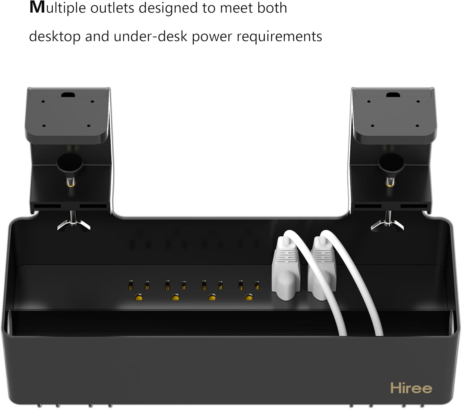 - 【6 Integrated AC Outlets – A Standout in Cable Management】 The Hiree under desk cable management tray distinguishes itself with 6 built-in AC sockets, making it an essential addition to your computer desk accessories. Whether you’re at a standing desk or a regular workstation, charging your phone, headphones, or tablets becomes effortless—no more hunting for extra power strips. It streamlines wire management by merging cord organization and charging needs, banishing the chaos typical of under desk cable setups. For anyone focused on desk organization, it transforms messy wires into a neat system, fitting seamlessly into your overall cable management under desk approach.